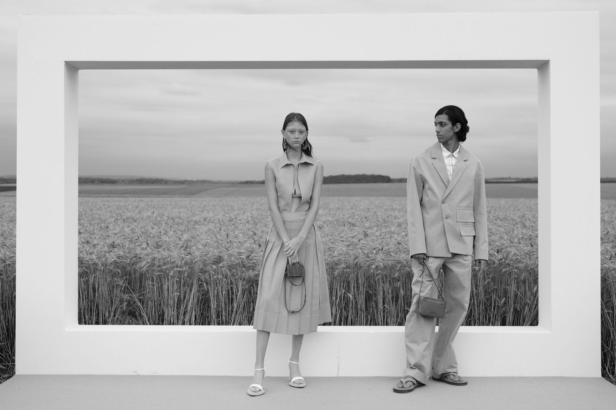 Un défilé dans un champ de lavande, des silhouettes isolées dans un paysage désertique, une scénographie minimaliste.