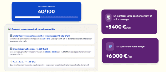 Oui. L’objectif de cet échange est d’analyser votre positionnement, la cohérence de votre image et la perception de votre marché. Il s’agit d’un diagnostic stratégique, sans engagement.